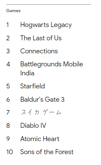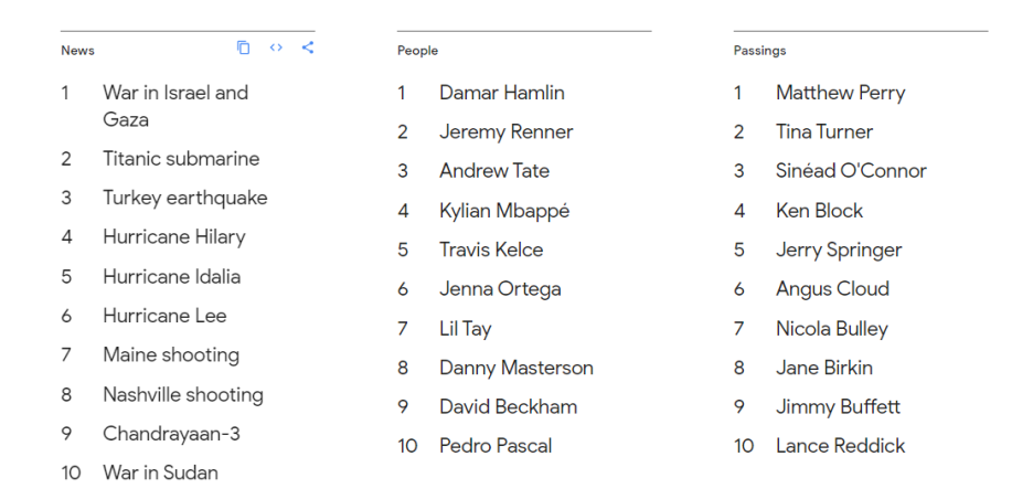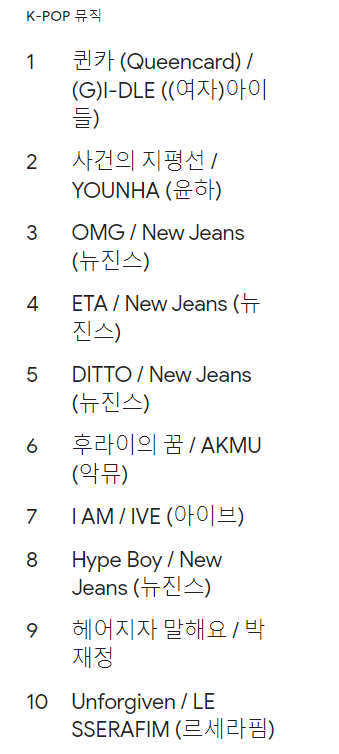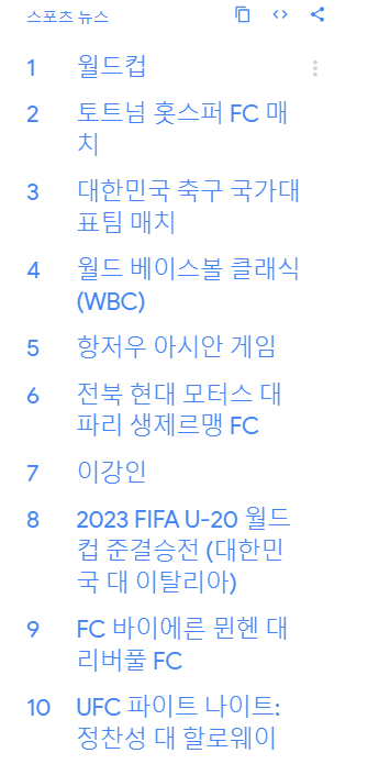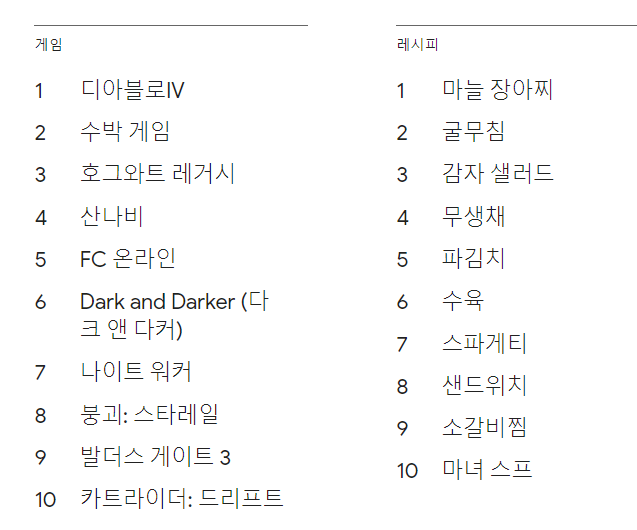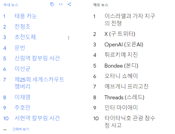 2023년 한해동안 구글트렌드 검색어 순위 입니다.
