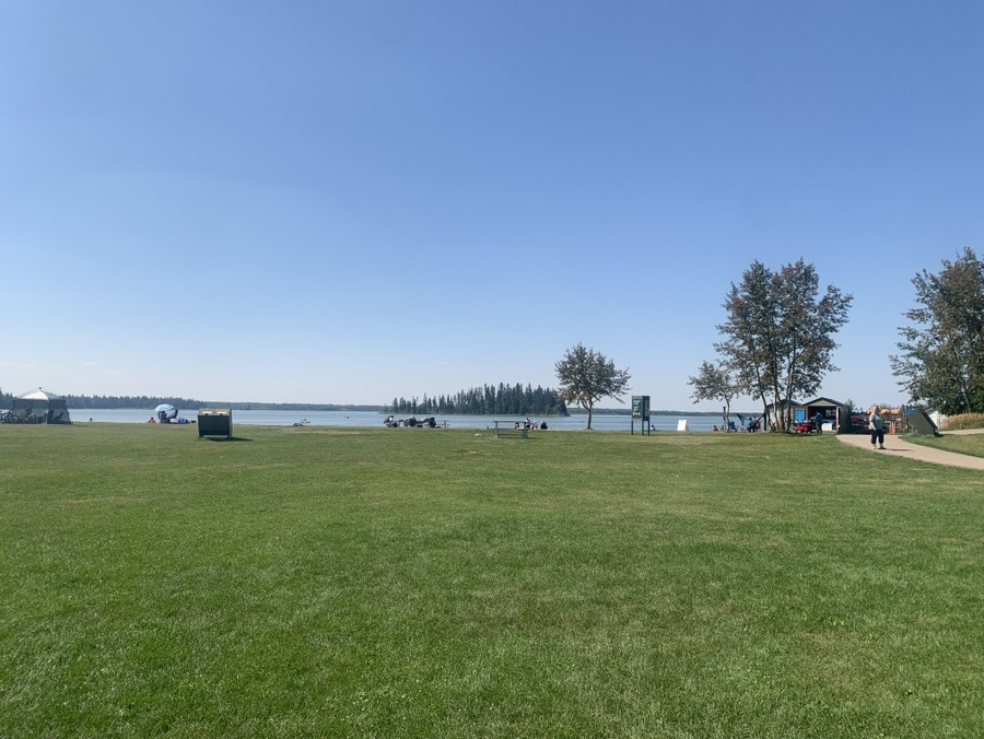 넓은 잔디밭 뒤로 보이는 호수가 엄청~나게 큽니다~