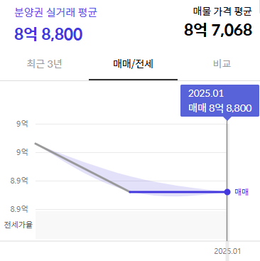 가격이 다소 하락한 모습이고 초기 고분양가 논란이 있었던 단지입니다