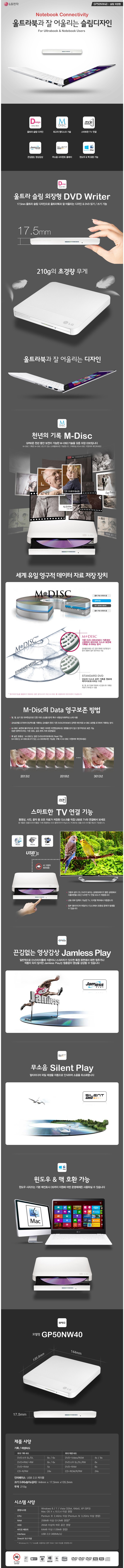 LG전자 Slim Portable DVD Writer GP50NW40 외장형 (정품)