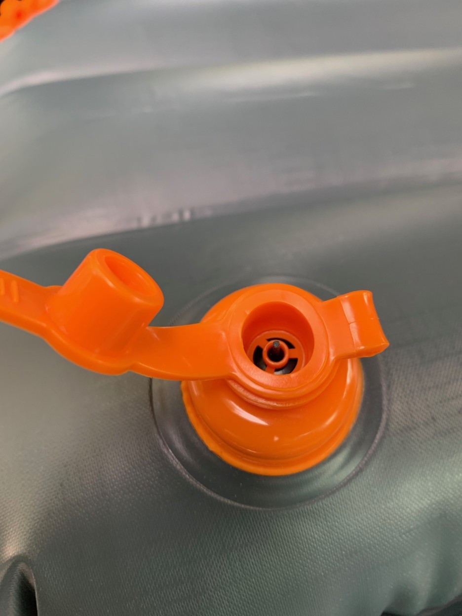 이 때 주황색 주입홀의 뚜껑이 총 2개씩인데 중간 뚜껑을 닫고 공기를 주입해야 공기가 다시 빠져나가지 않습니다.