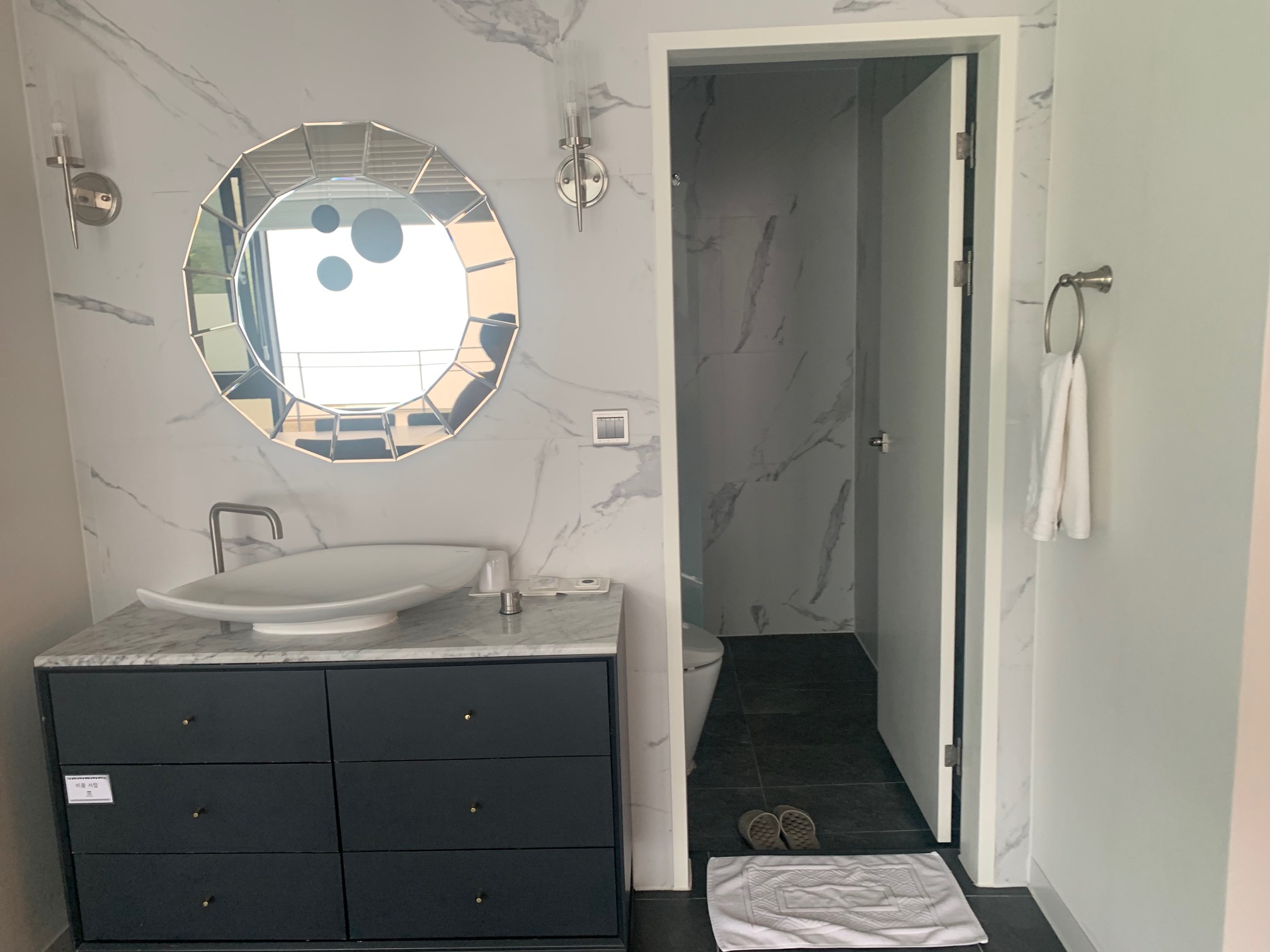 현관 정면에 세면대와 화장실이 있습니다.
