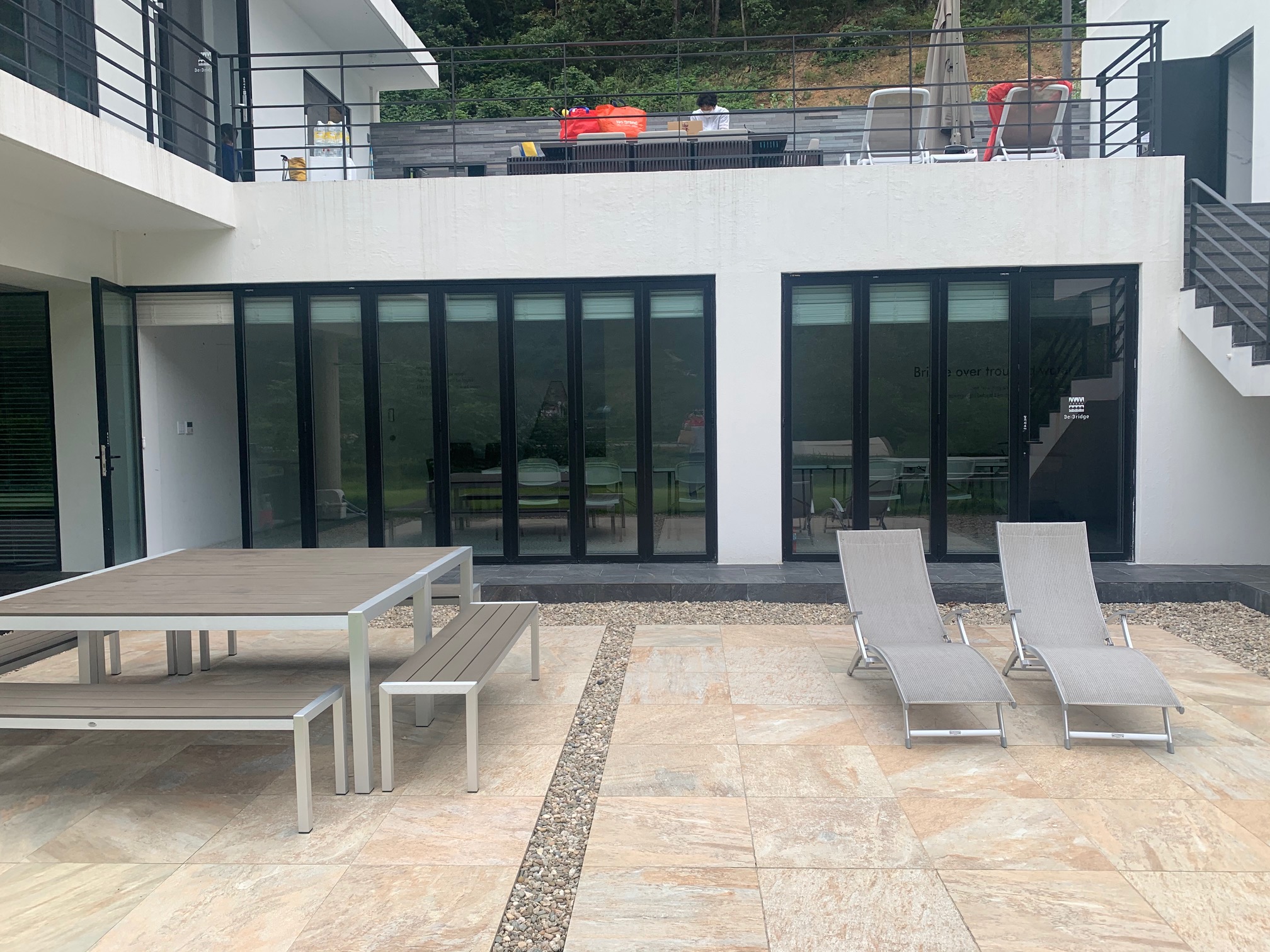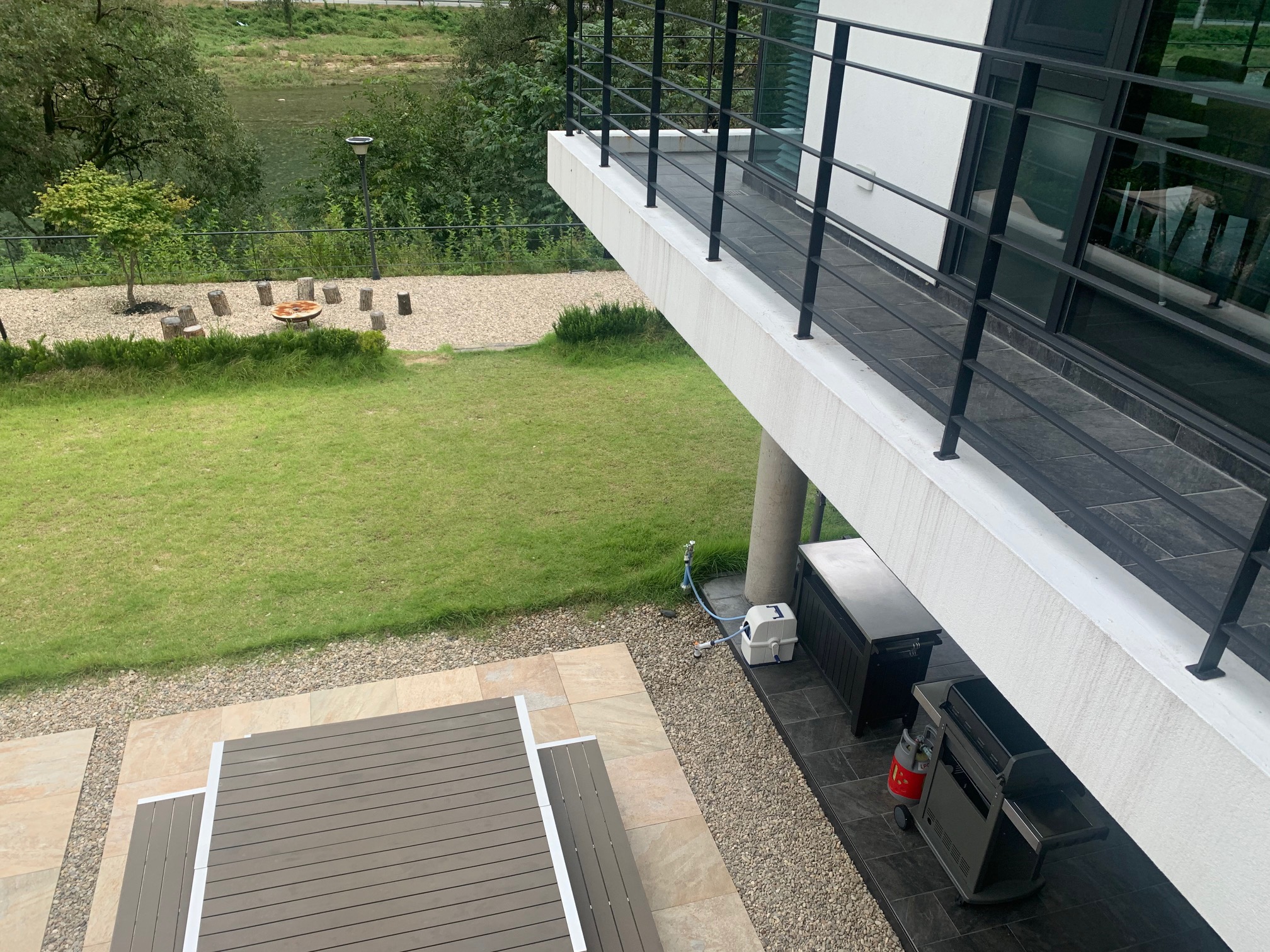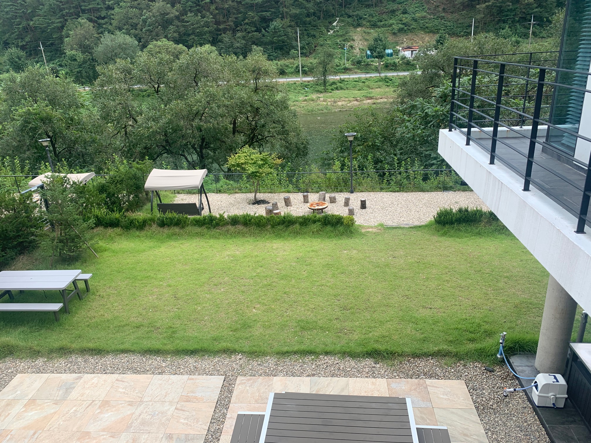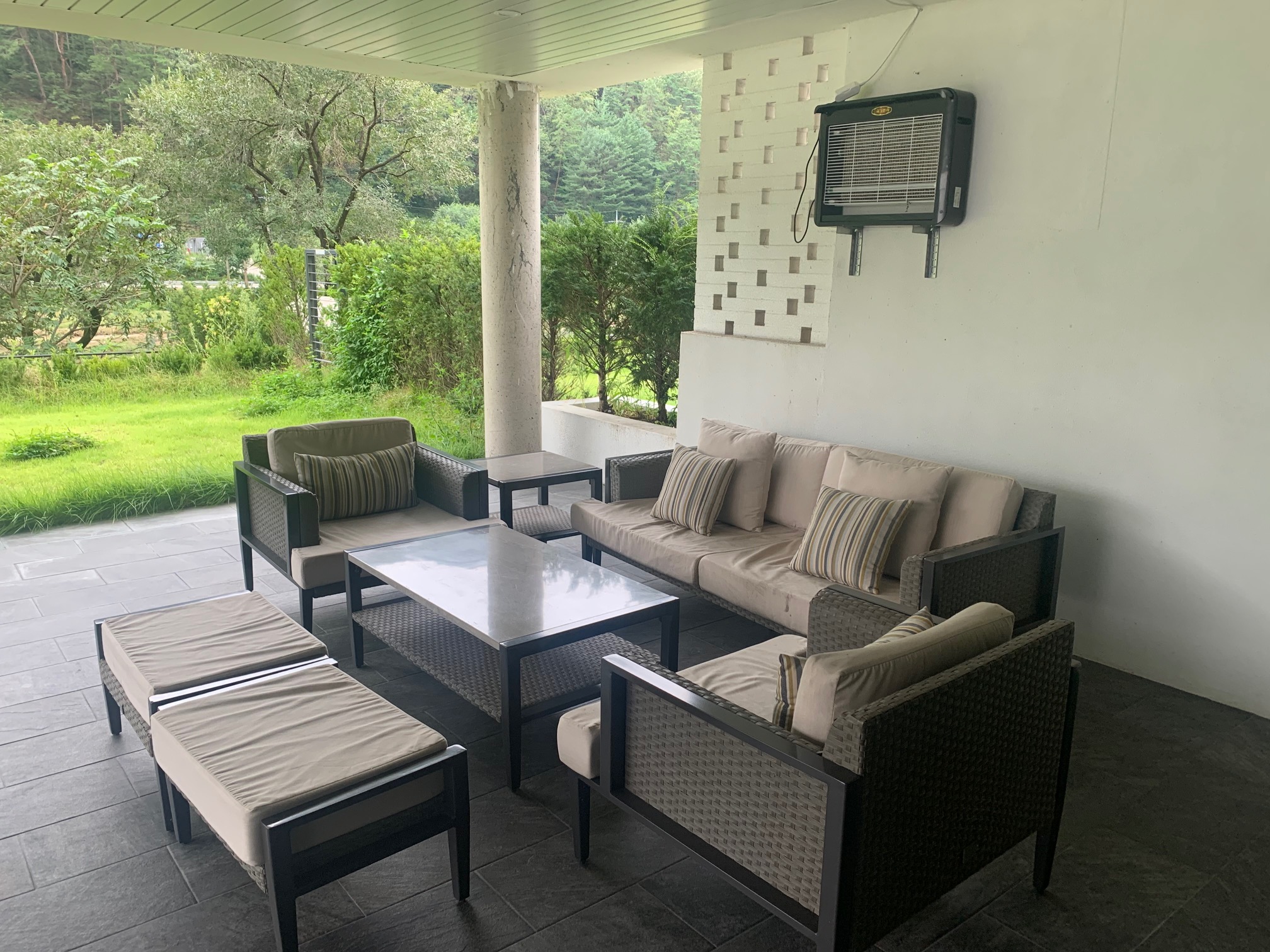 야외 소파가 있는 장소는 2층 거실, TV 소파가 있는 장소 아래지요.
