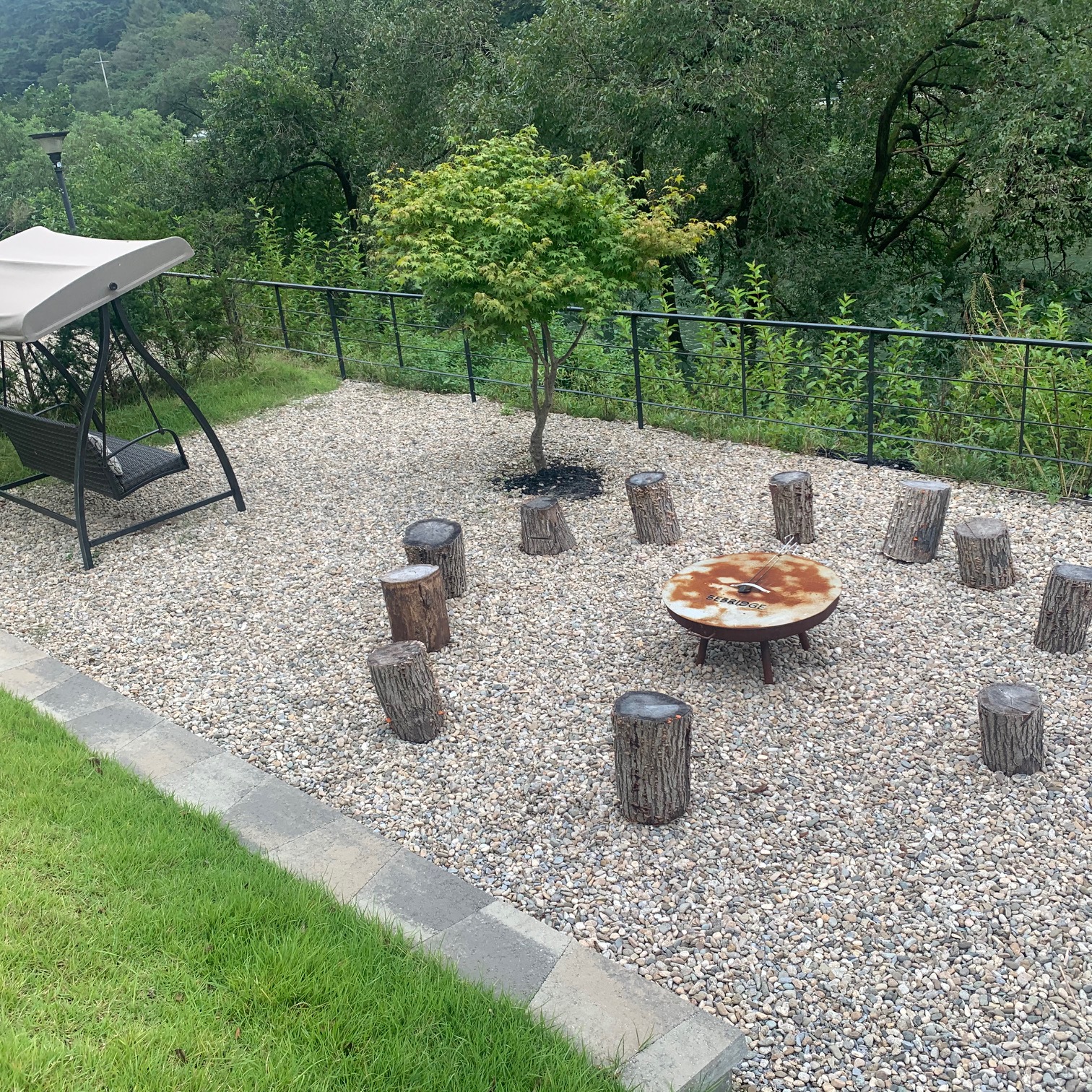 아래 계단으로 내려가면 자갈밭에 불멍하거나 고구마 등을 구워먹을 수 있는