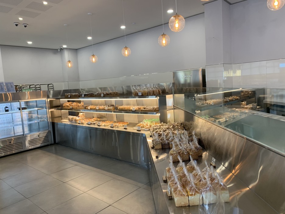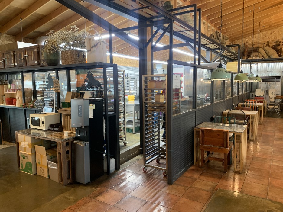 들어가면 좌측에 식빵을 팔고 우측에는 테이블과 의자가 있습니다.