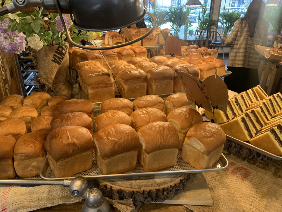 계산대를 마주하고 오른편에는 식빵이 종류별로 꽉차있습니다.
