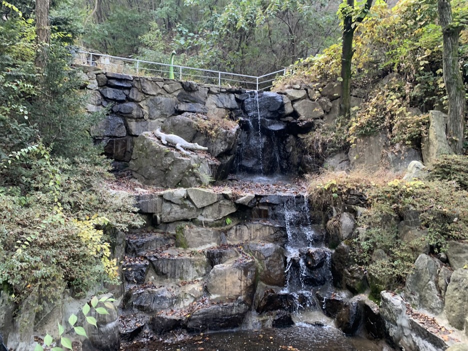 가장 꼭대기에 올라가면 폭포와 연못이 있습니다.