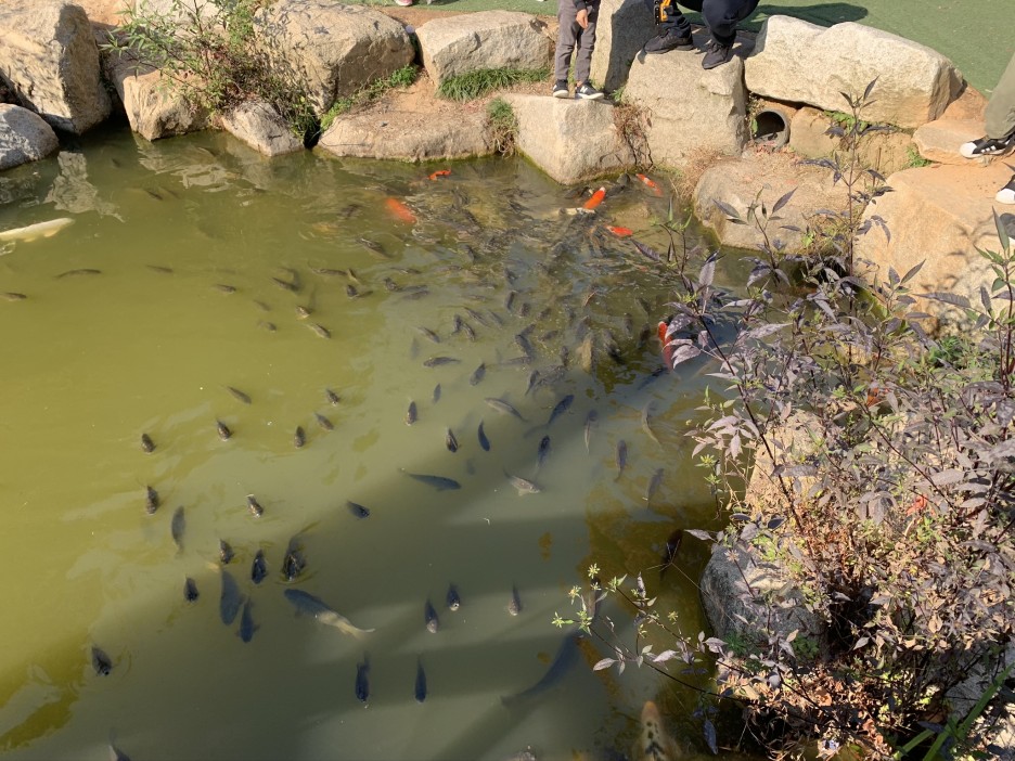 표를 구매하고 체온 측정을 통과해서 들어가면 연못이 먼저 보입니다.