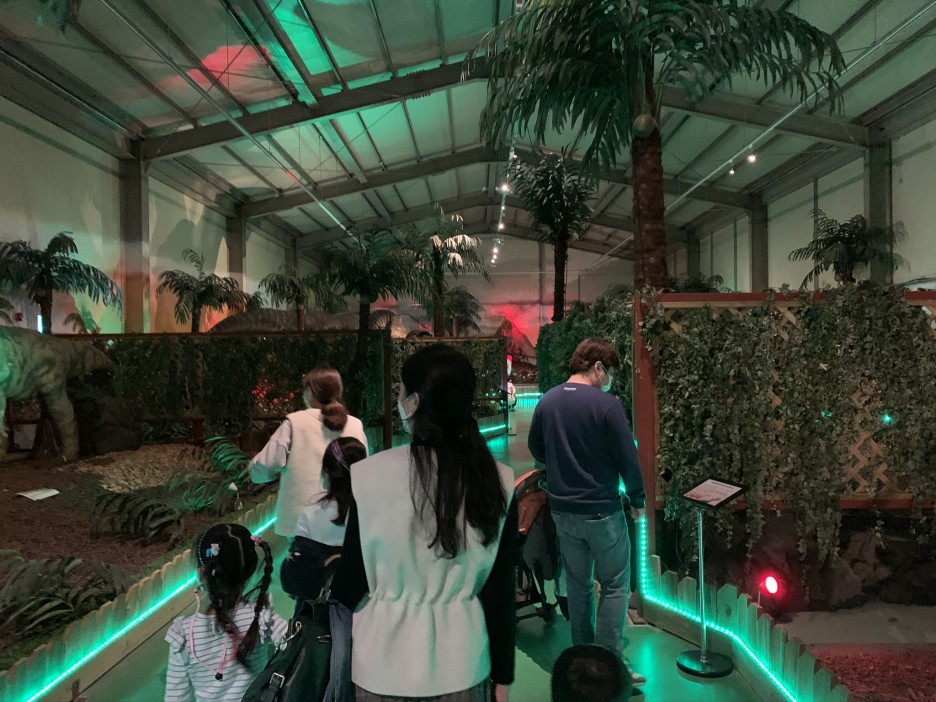 공룡들 울음소리 그리고 조명까지 더해져서 아이들은 실제로 공룡 세계에 온 것처럼