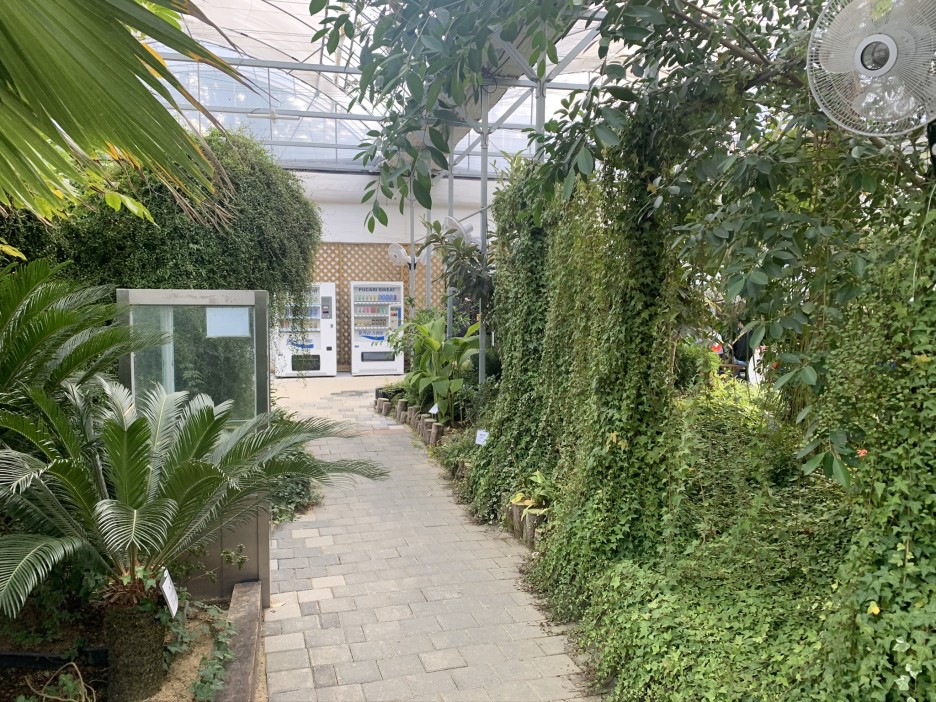 식물관에는 중간중간 쉴 수 있는 테이블이 있고 커피를 뽑아먹을 수 있는 자판기도 있어서