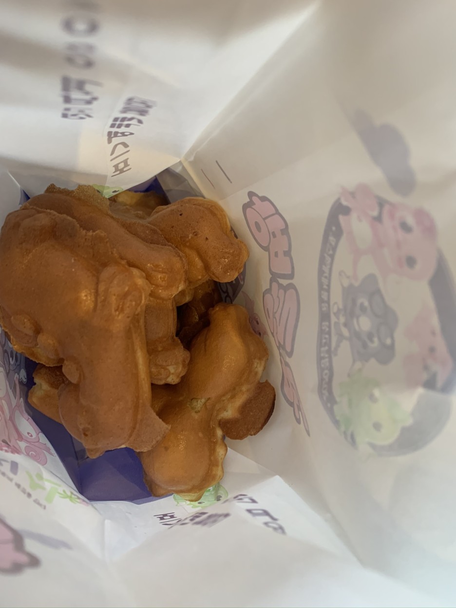 까페 앞에서 공룡빵을 판매하는데 까페에서 계산을 하고 영수증을 보여주면 빵을 구워 줍니다.