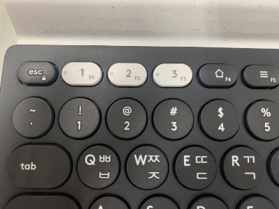 그리고 F2, F3 원하는 버튼을 3초간 꾸욱 누릅니다. 그럼 버튼에 불이 깜빡이고 테블릿에 K780이름이 뜹니다.