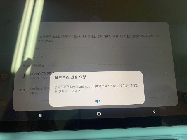 2 핸드폰 블루투스 연결에 K780 이름 선택하고 팝업뜨면