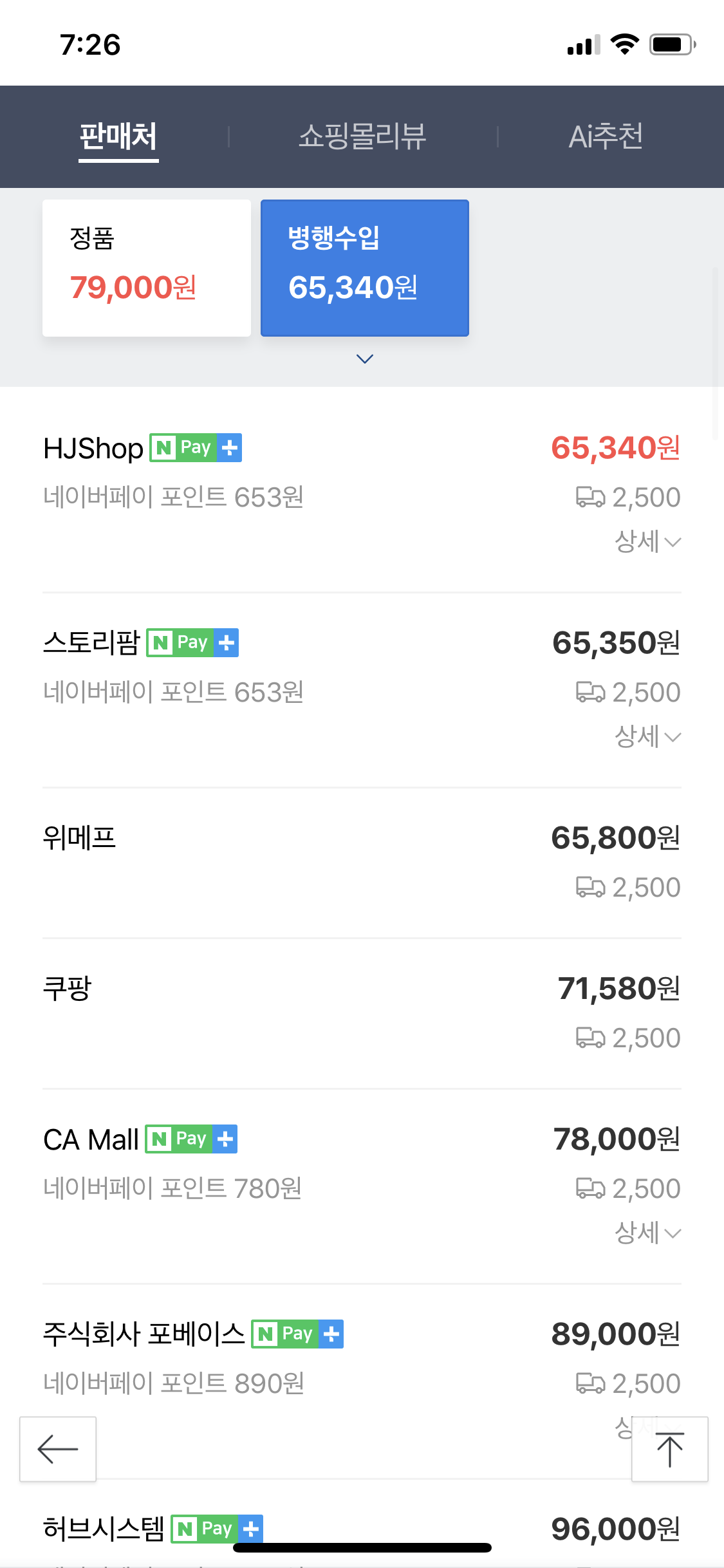 나중에 네이버 쇼핑을 보니 6만원대까지도 구입이 가능하더군요.