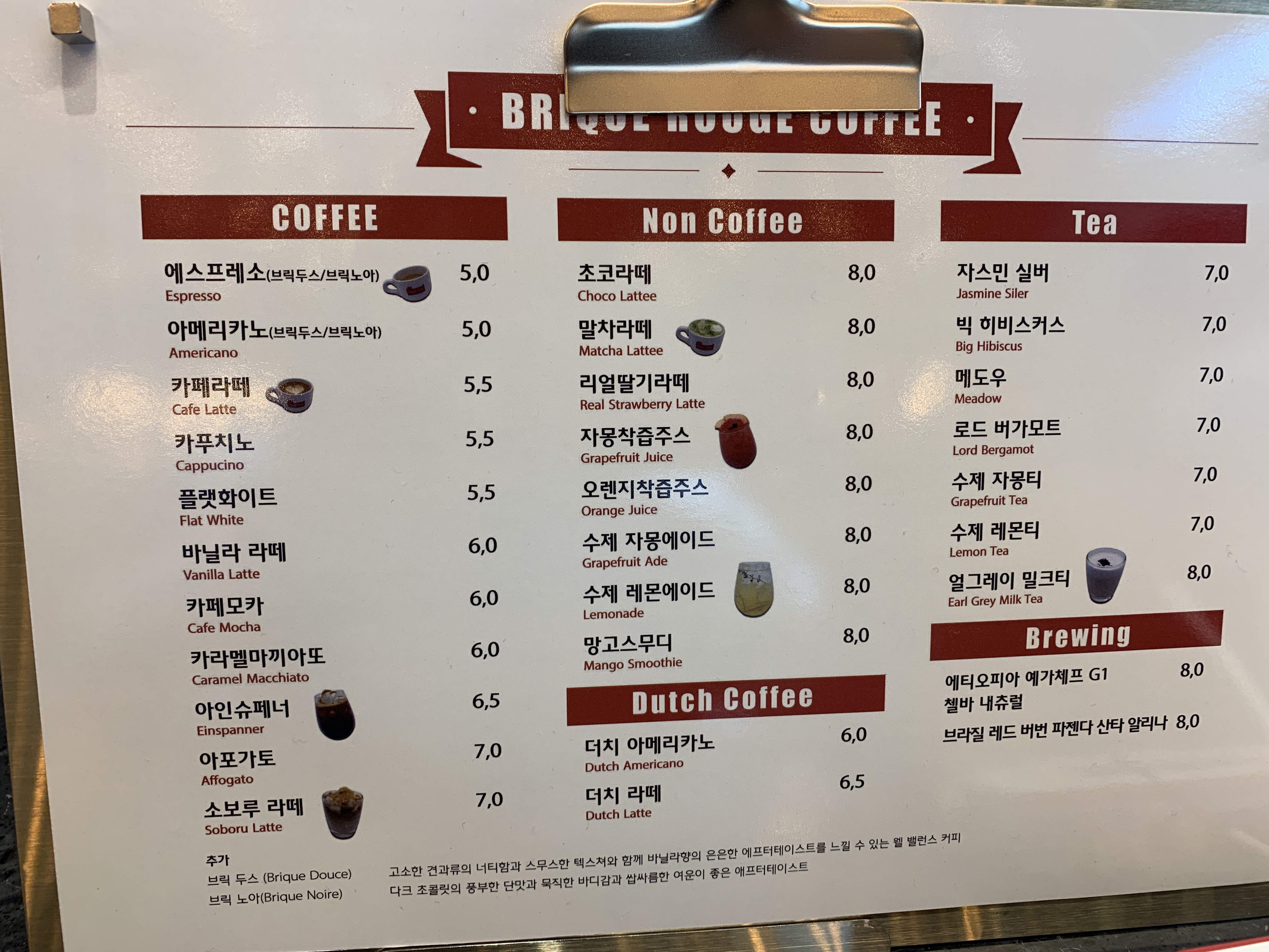 커피값은 인테리어가 반영되었듯이 6000원대가 대부분입니다.
