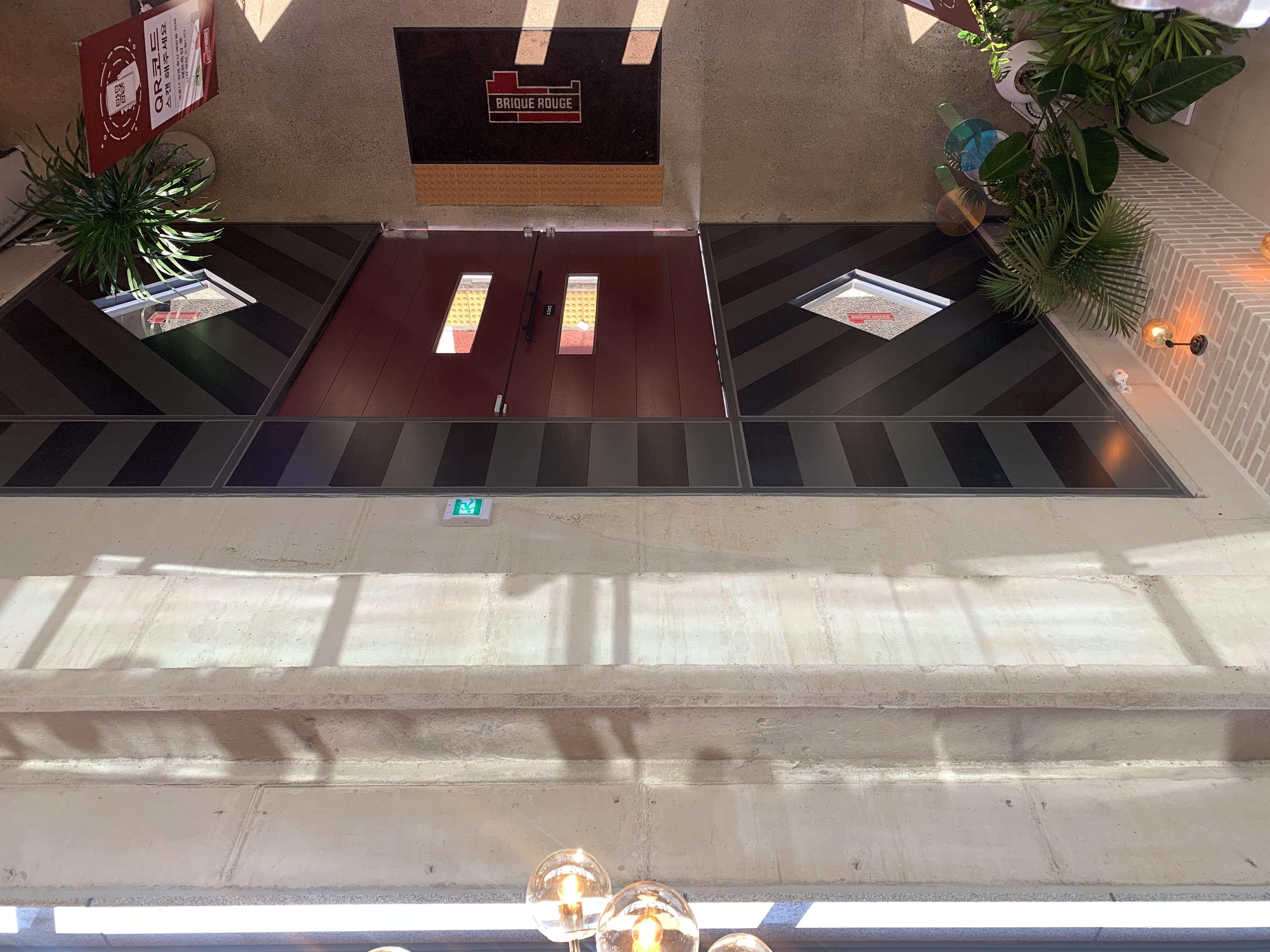 1층으로 들어가면 인상깊은거는 자주색 대형 문입니다.
