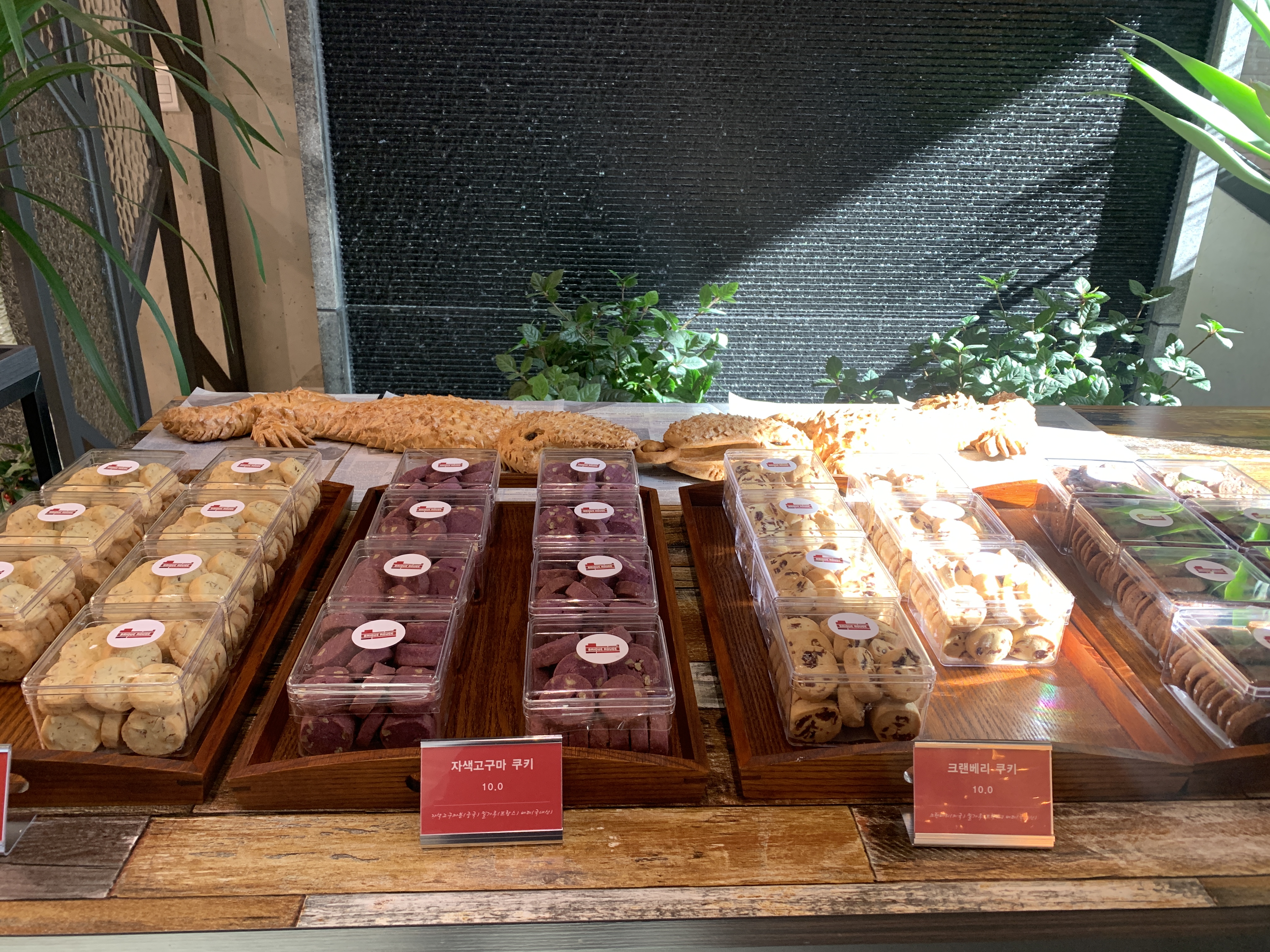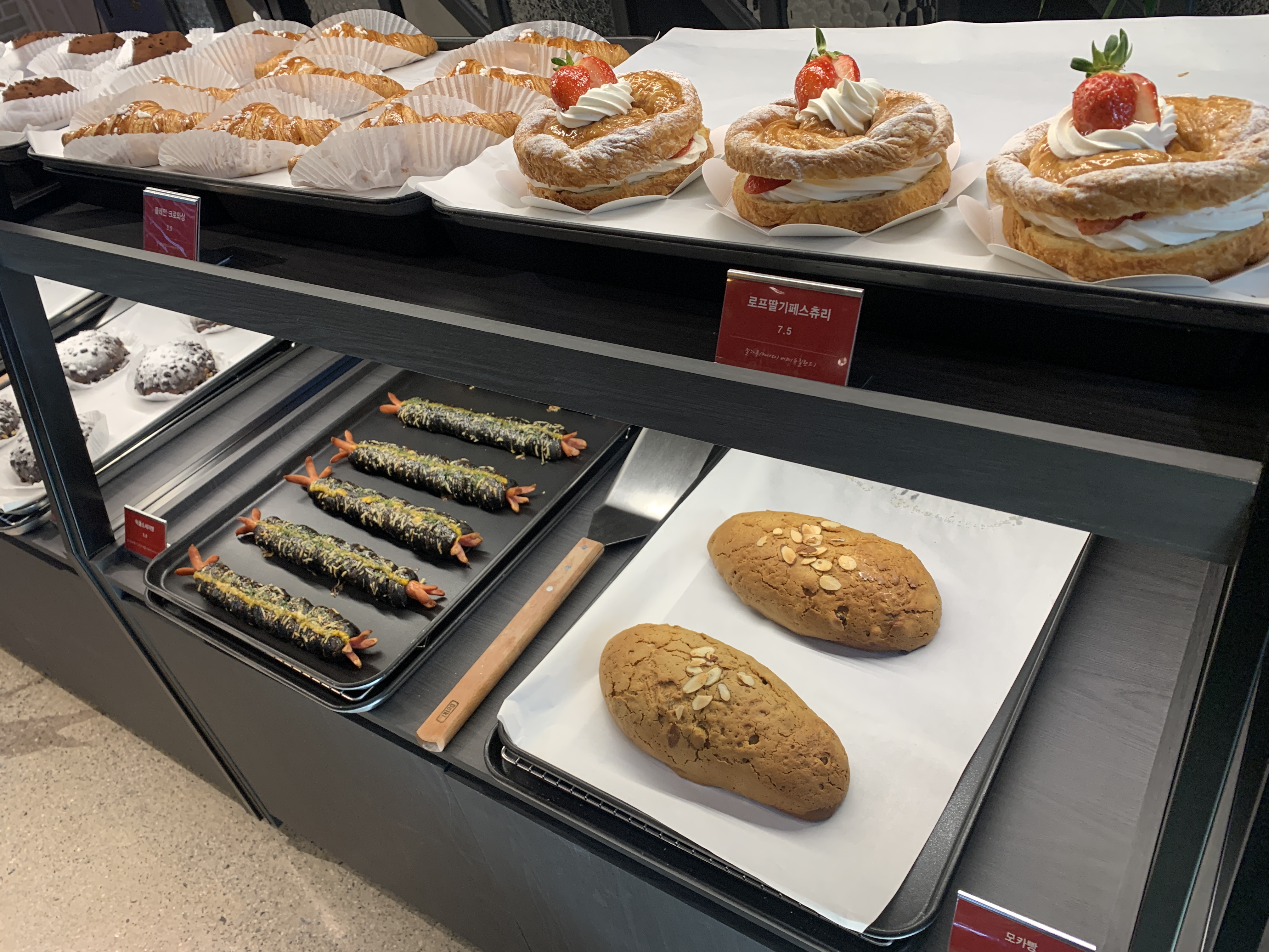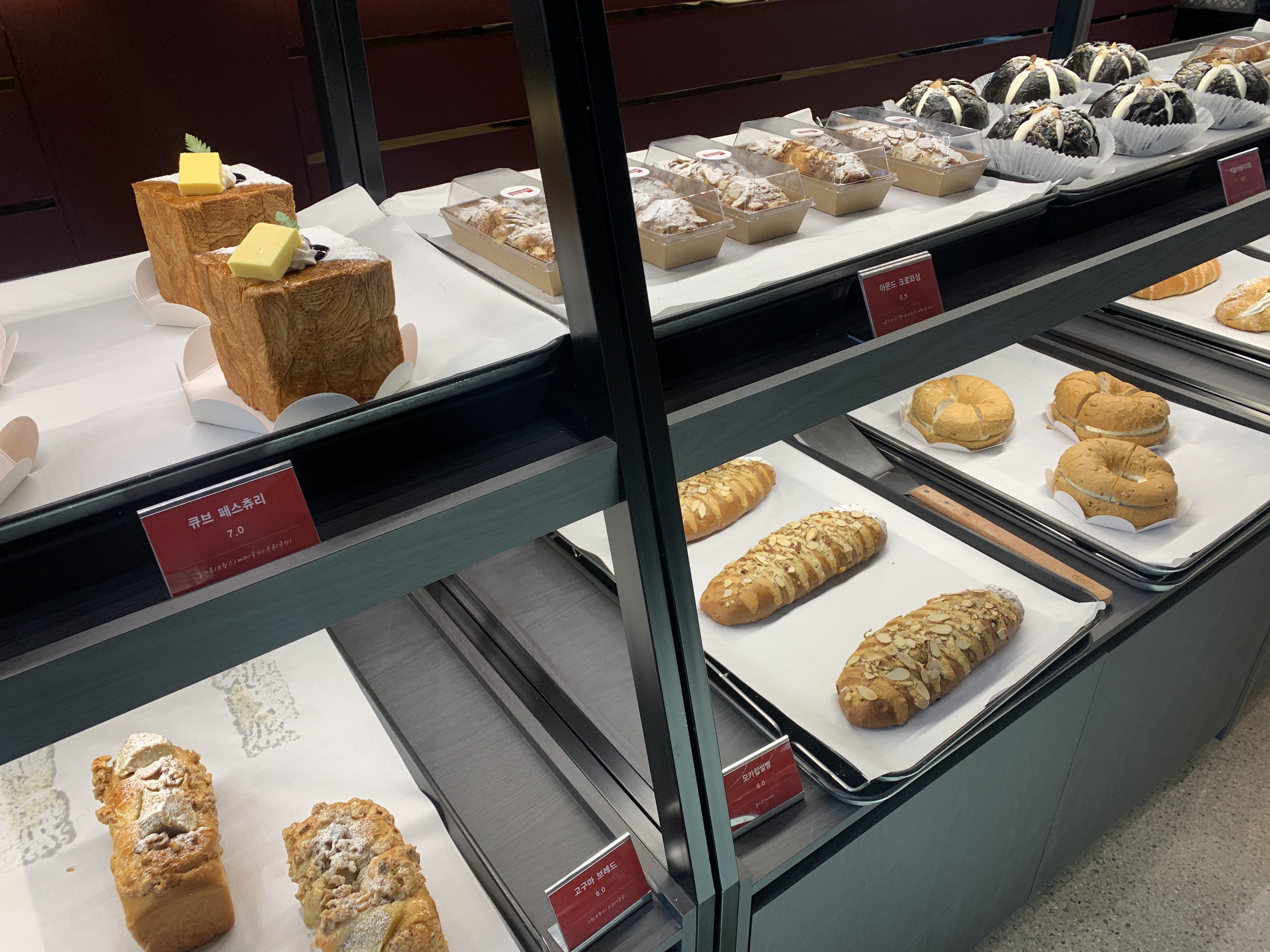입구를 통해 쭉 들어가면 중앙에 빵이 있고 맨 끝에 주문대가 있습니다.