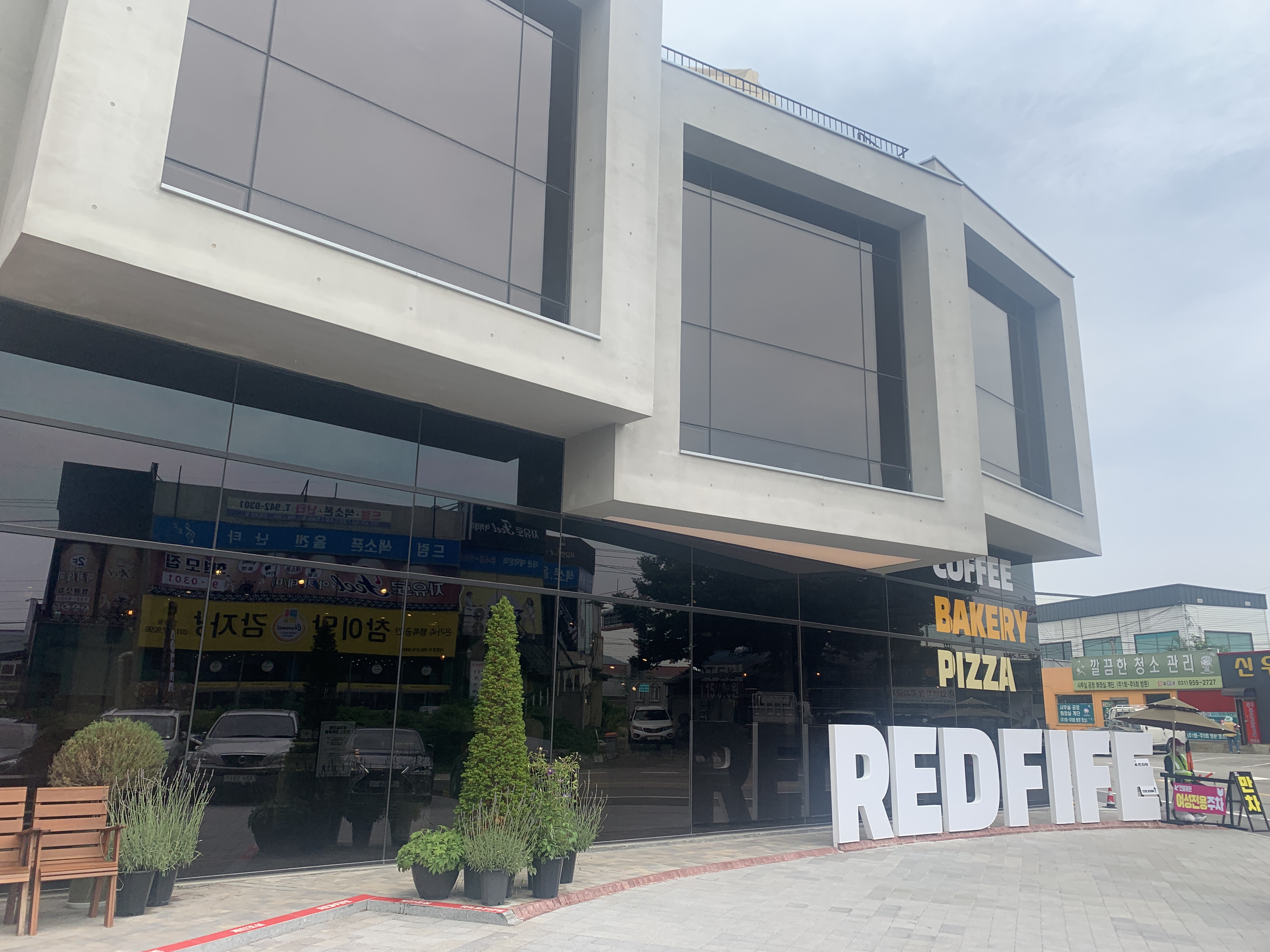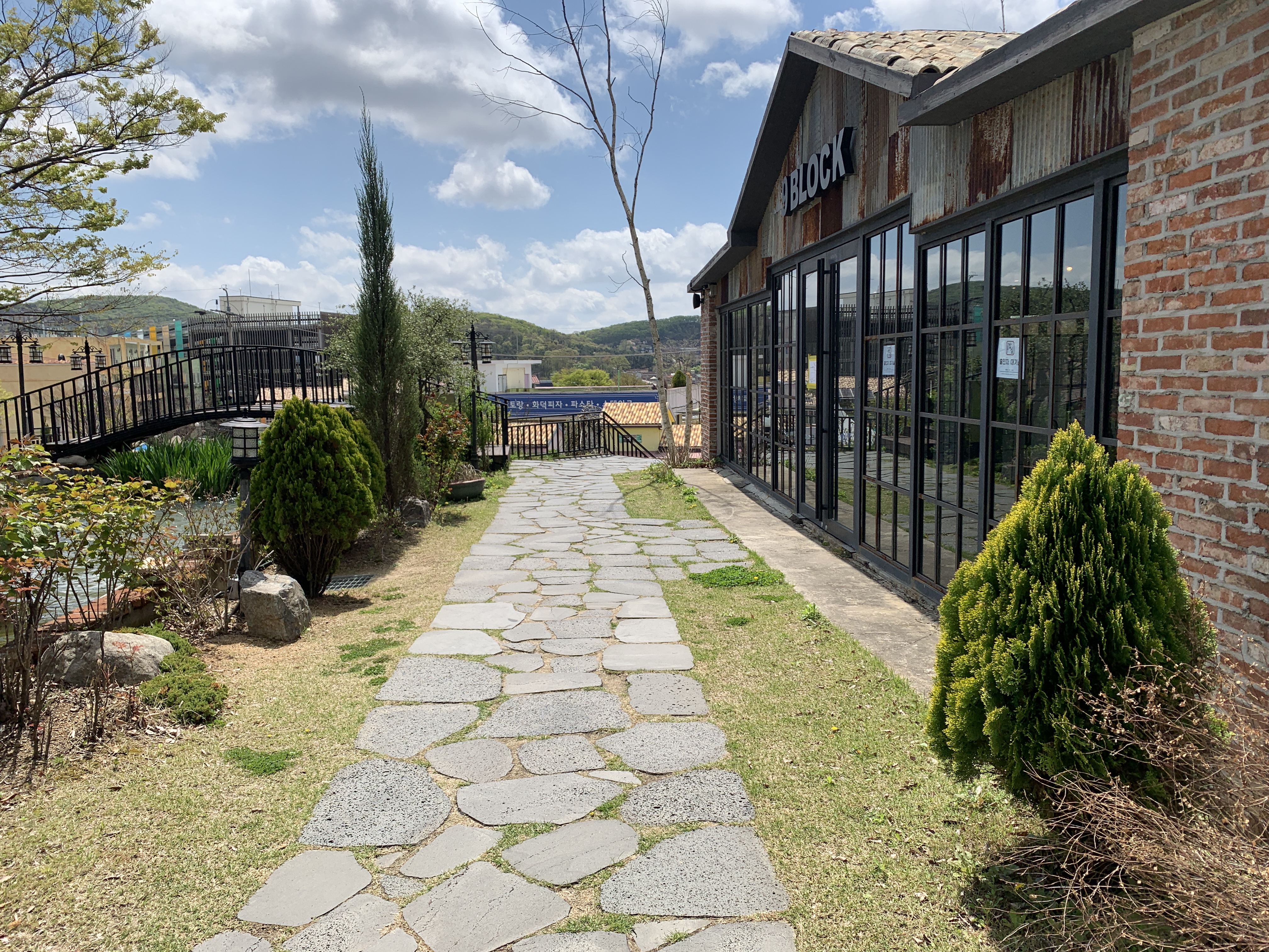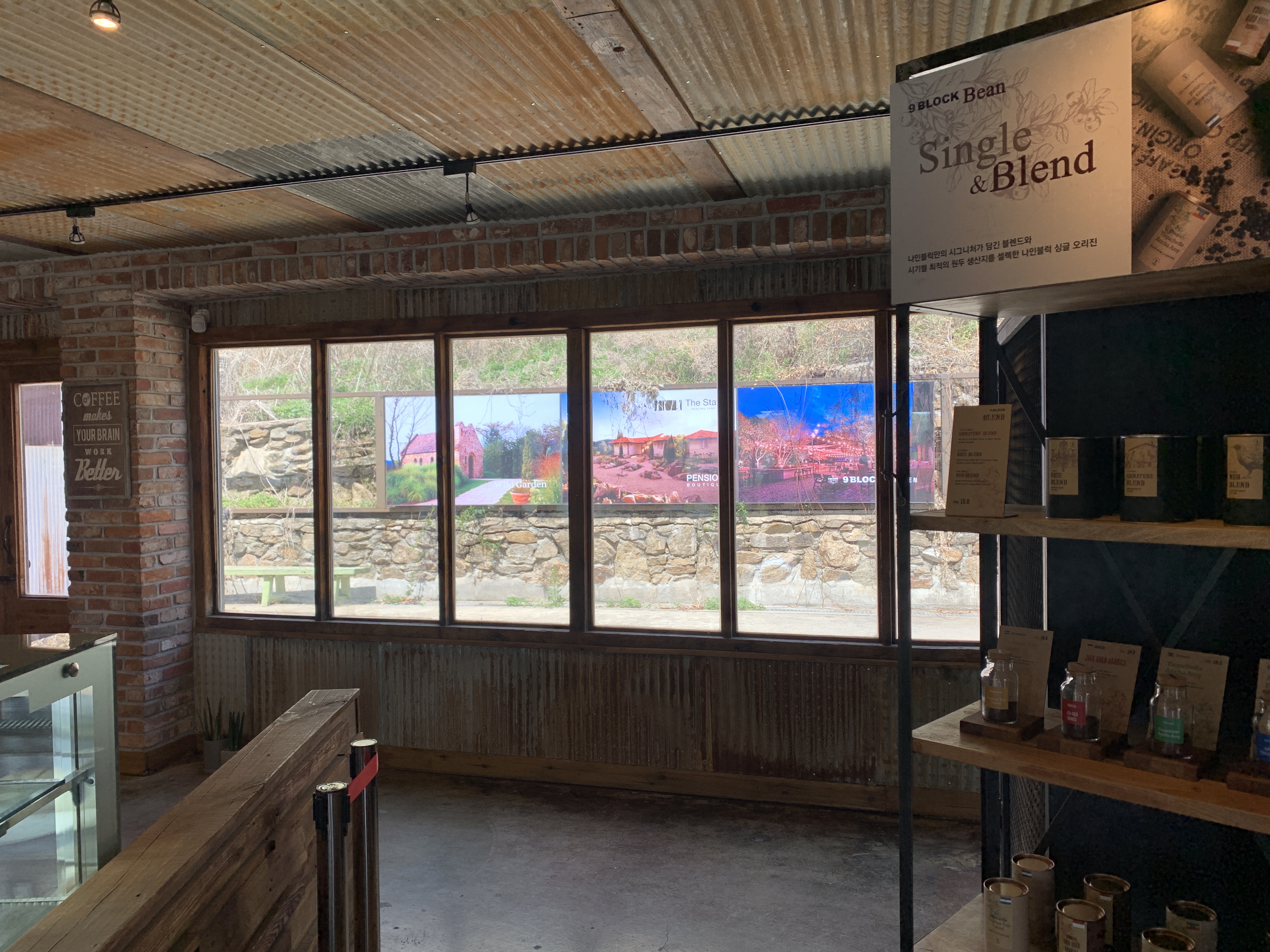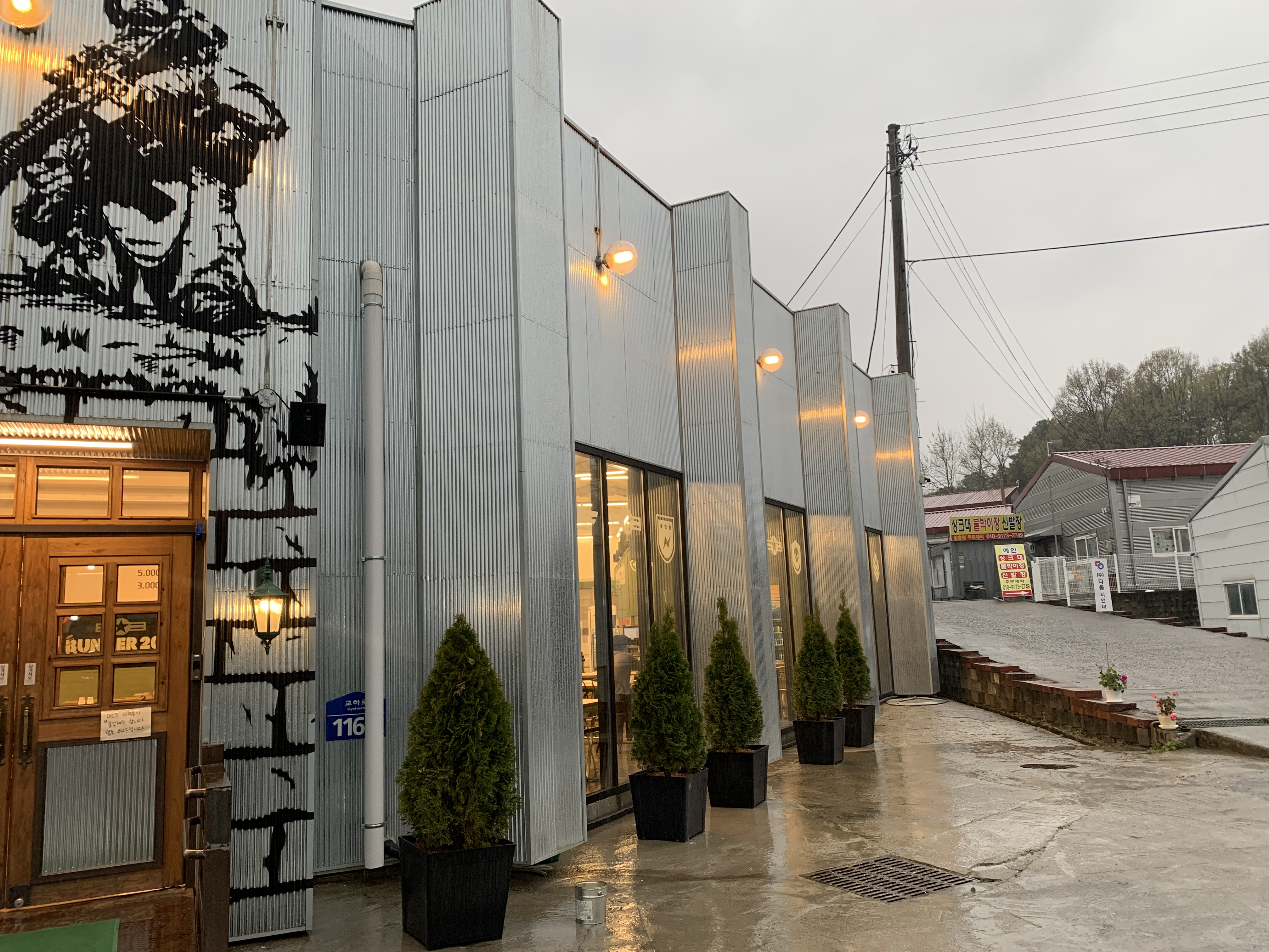 간단한 슬레이트 판넬식 건물인데 참 색감과 테마를 가지고 멋지게 꾸몄습니다.