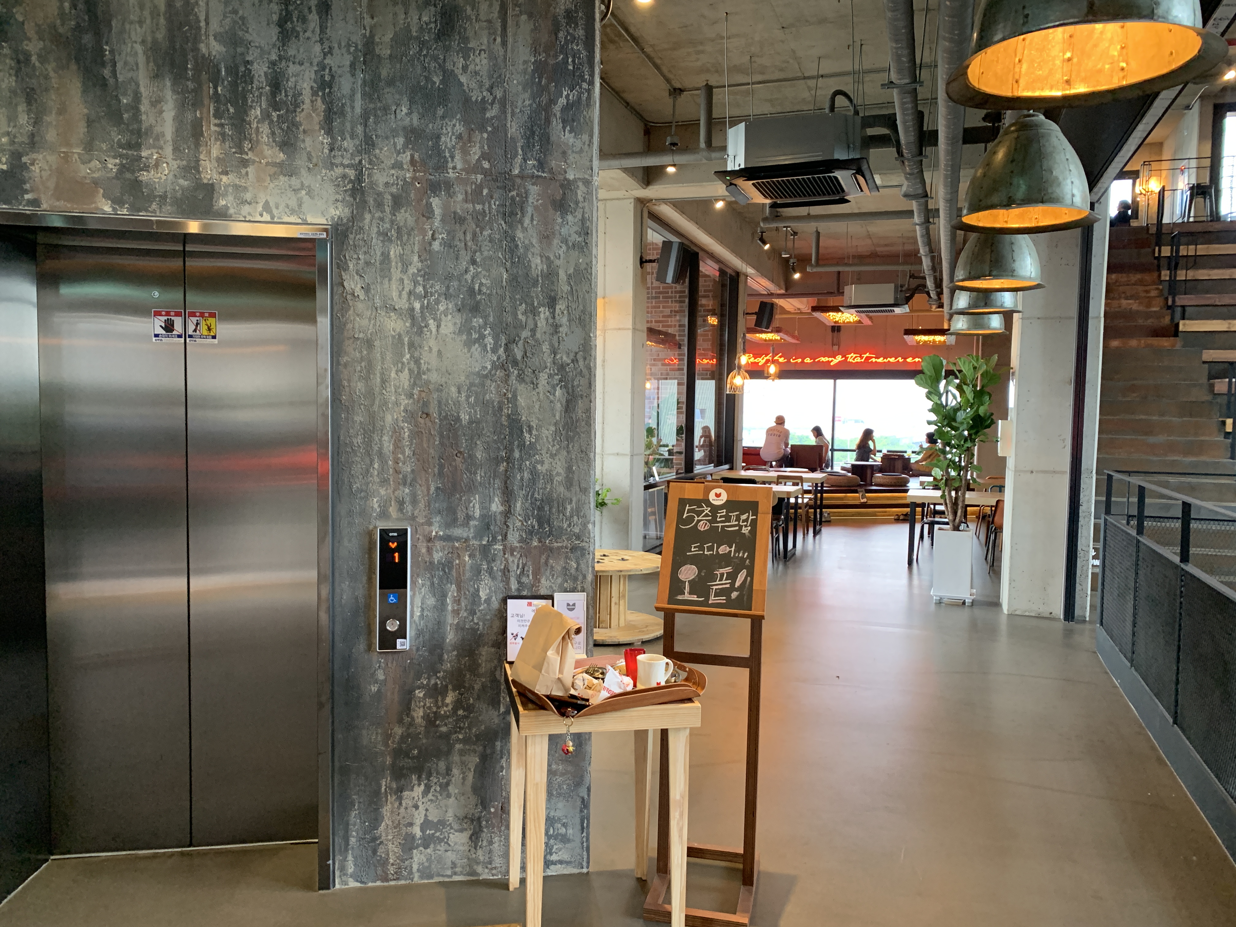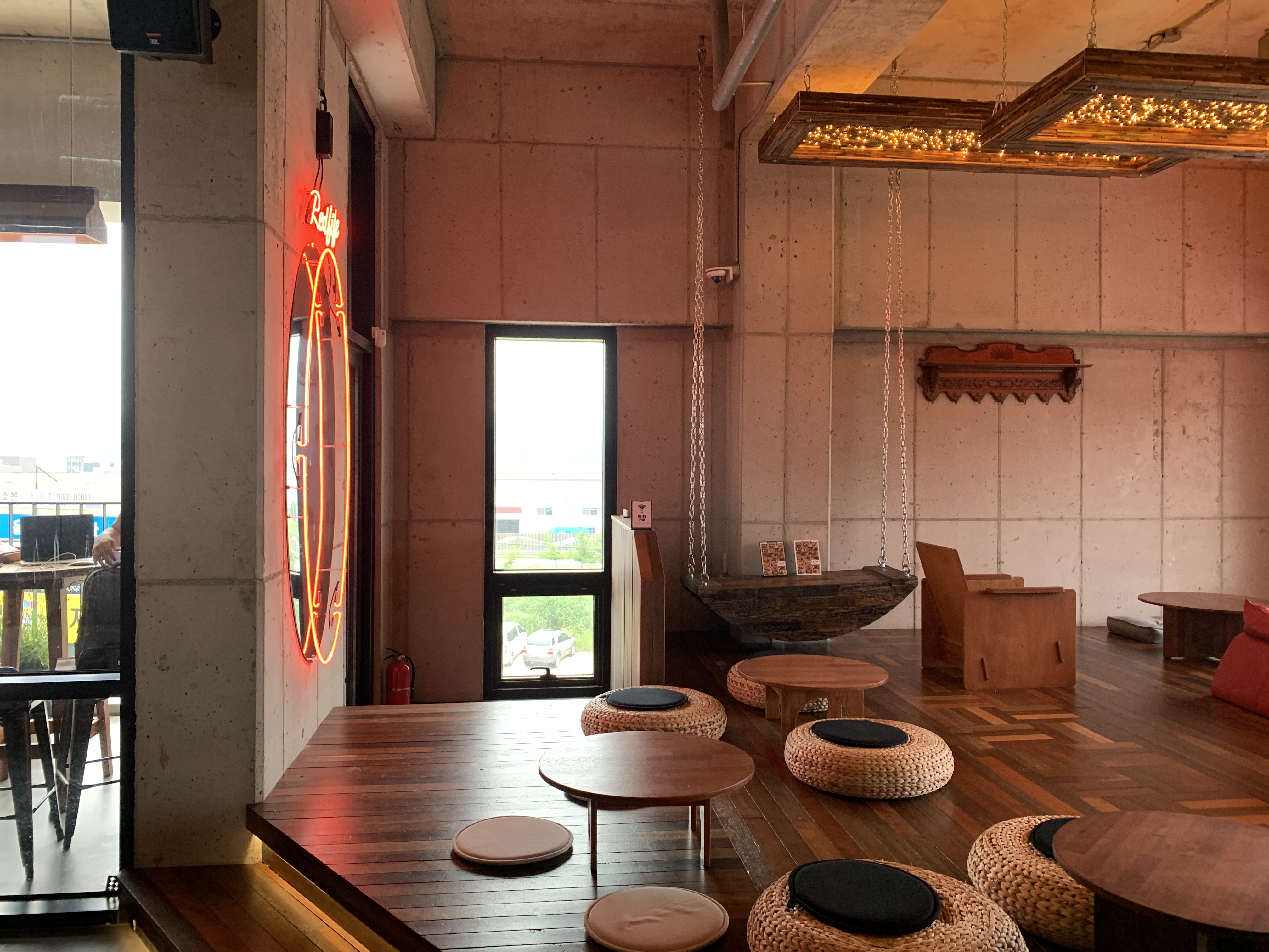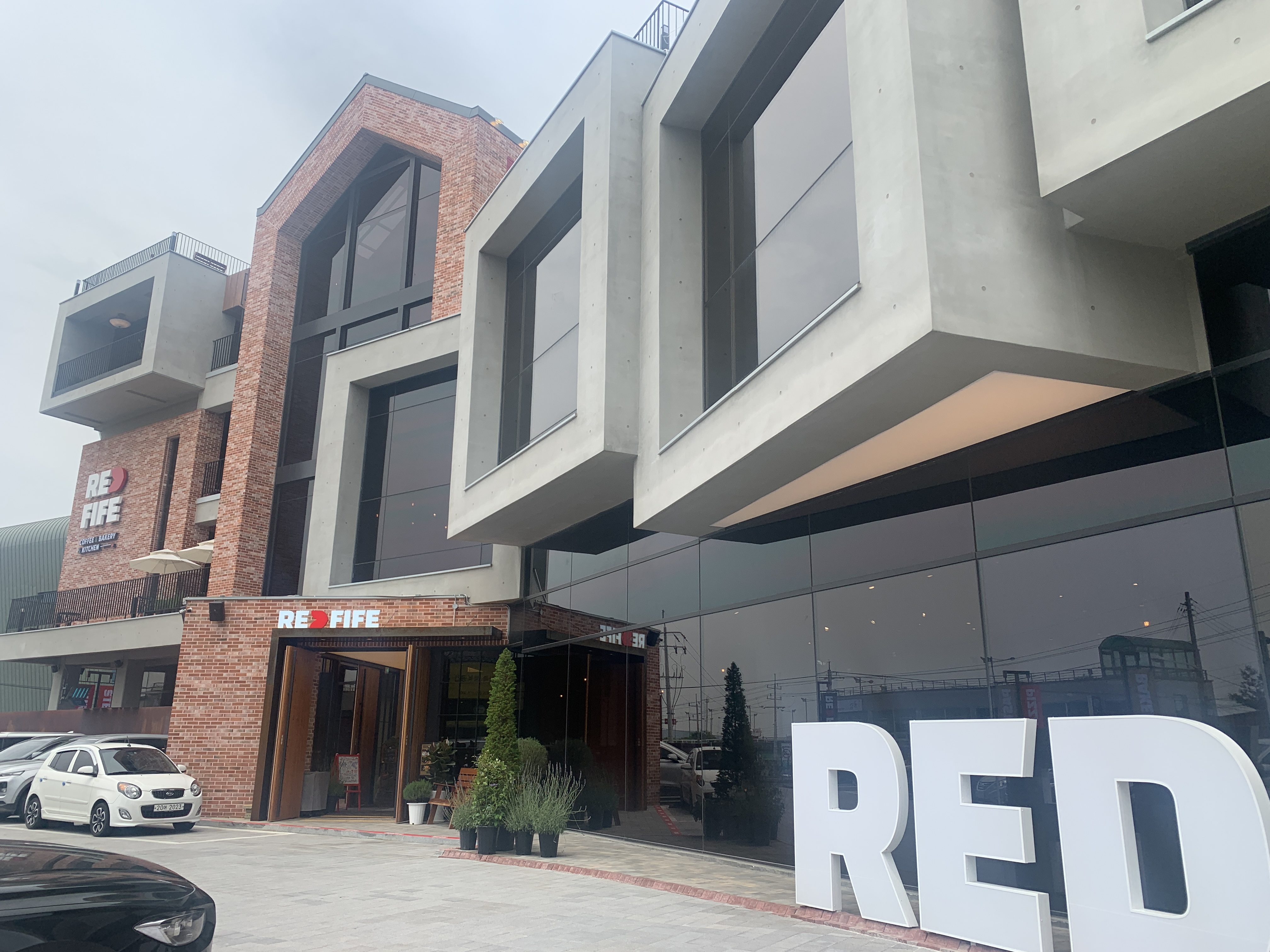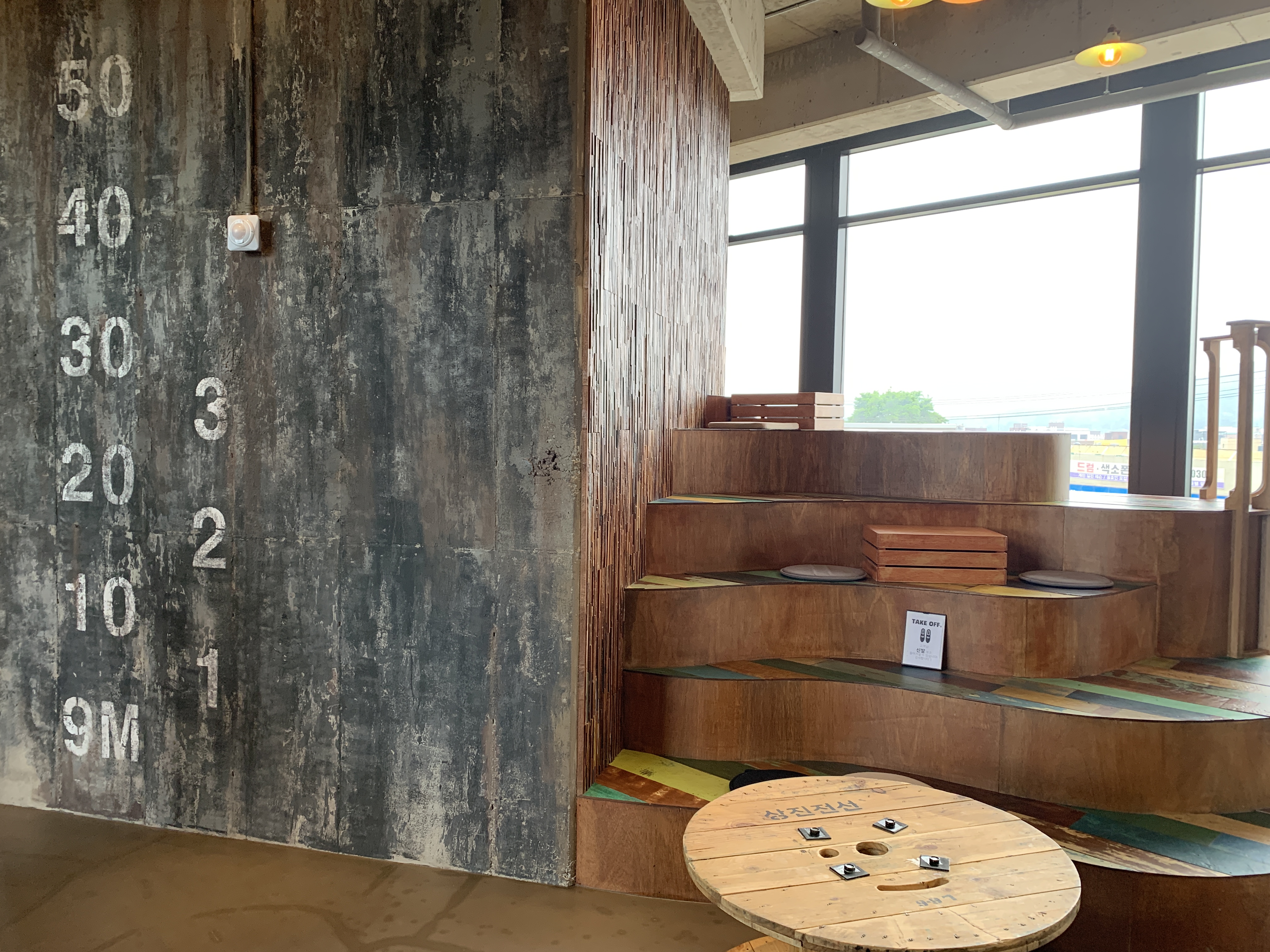 간단한 슬레이트 판넬식 건물인데 참 색감과 테마를 가지고 멋지게 꾸몄습니다.